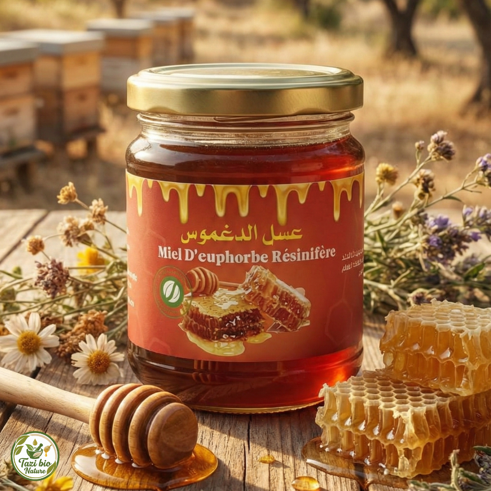 Célèbre au Maroc, le miel de Daghmous est un miel de caractère unique. Il est immédiatement reconnaissable à son goût piquant qui « chauffe » la gorge, signe de sa puissance. Traditionnellement utilisé durant l’hiver, c’est l’allié incontournable pour affronter le froid et apaiser les voies respiratoires.